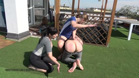 MISTRESS GAIA - ASS MARKING - HD ENGLISH SPEAKING My friend and I tied a slave to the stand, with his ass well exposed towards us. We want to have fun whipping him until he turns red. At first we take turns hitting him one at a time, but then we increase the intensity and hit him at the same time and with more and more power, with his ass getting redder and redder. Only when we are satisfied with our work of art imprinted on his ass do we stop and leave him suffering to reflect on his condition.